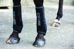 Ice-Vibe boots use a neoprene outer with elasticated inner pockets for the vibration panels, soft binding and secure Velcro fastenings to prevent slipping. Contoured to fit the lower leg, Ice-Vibe boots can be used on both front and hind legs. Easy to use, first wrap the cold packs around the leg, then place the boots on top. Ensure your vibration panels are in the preferred pocket if you wish to target a specific area and always flat side of the panel to the horse's leg.